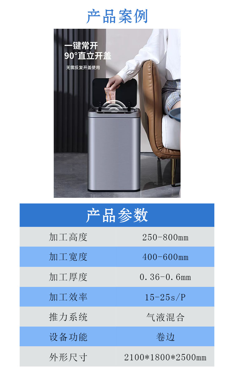 本文介紹的是一款異形雙頭卷邊機,產(chǎn)品放進模具中,按下自動啟動按鈕,模具推到固定位置,兩側(cè)推進壓緊,上油缸推下碰到模具后漲緊產(chǎn)品上缸繼續(xù)往下推卷邊到設(shè)定位置,下油缸推上卷邊到設(shè)定位置,完成雙頭卷邊,全部上下油缸復(fù)位、左右氣缸復(fù)位,模具退出拿出產(chǎn)品。(公司根據(jù)客戶需求,為客戶量身定制適合的設(shè)備,歡迎新老客戶咨詢了解)