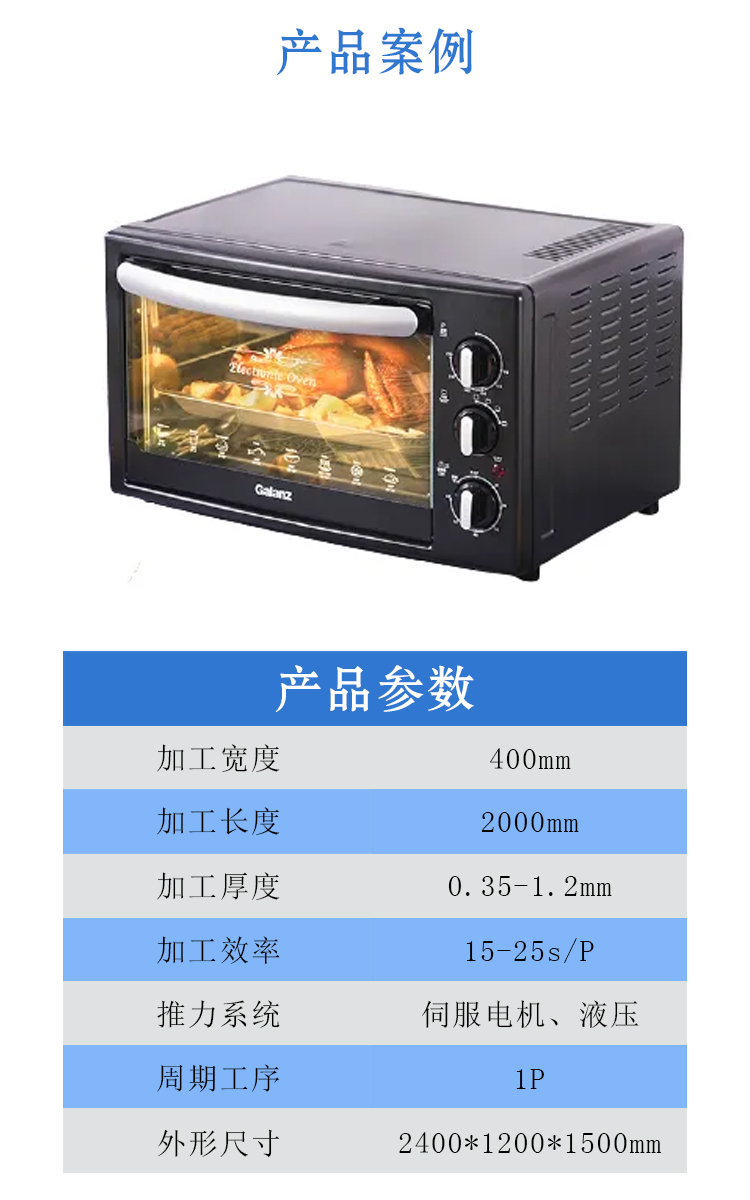 本文介紹一款適用于烤箱外殼、方形垃圾桶產(chǎn)品加工,我們采用伺服電機(jī)控制送料和擺角,對(duì)片材進(jìn)行加工,完成R角一樣,以使后續(xù)焊接、包邊、扣骨、卷邊等工序進(jìn)行。(如有需求的客戶歡迎你寄樣品過來,然后我們會(huì)免費(fèi)給你提供方案和報(bào)價(jià))