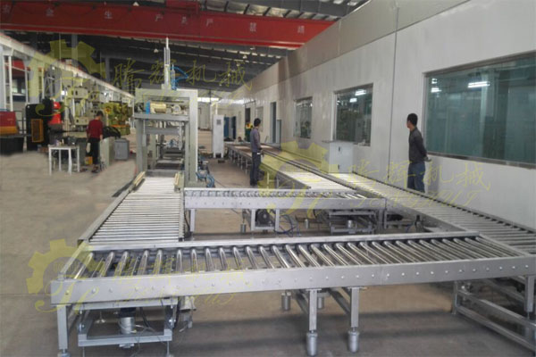 此套設(shè)備自動(dòng)化程度高、操作簡(jiǎn)單、輕松、產(chǎn)品質(zhì)量保證、并且安全、節(jié)能、減輕勞動(dòng)強(qiáng)度。這一整套設(shè)備主要以中間兩臺(tái)包邊機(jī)為主,其他輸送線、吊送機(jī)和翻轉(zhuǎn)機(jī)為輔所組成的。這套生產(chǎn)設(shè)備,無(wú)論是機(jī)器的設(shè)計(jì),還是生產(chǎn)現(xiàn)場(chǎng)的場(chǎng)地布置都是有著嚴(yán)格的要求的。